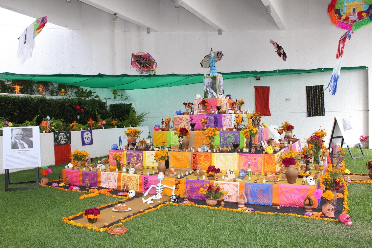 “El altar rinde tributo a nuestros seres queridos difuntos o a personajes importantes de la vida pública ya que es el rincón donde vivos y muertos se reencuentran cada 2 de noviembre, conviviendo y festejando con alegría el reencuentro”, se detalló en un boletín que emitió la embajada.