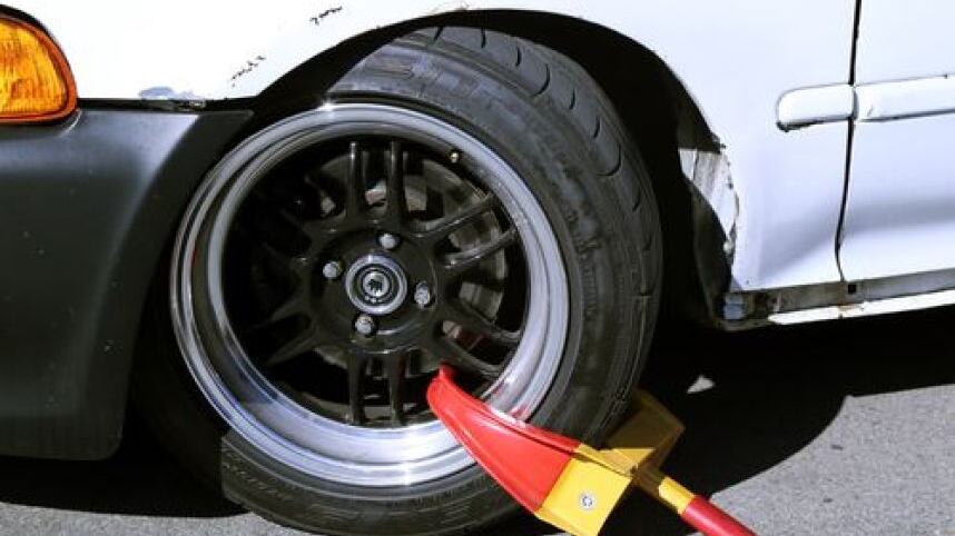 En redes sociales circula una fotografía de un vehículo municipal al que le colocaron un cepo por estacionarse en lugar prohibido.