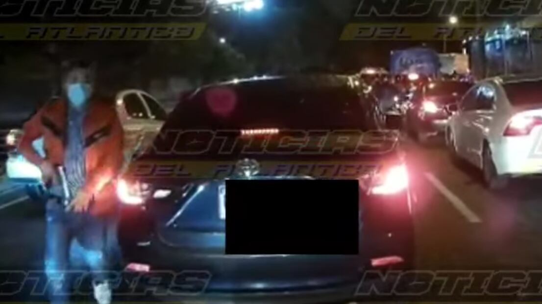 Fue un motociclista quien grabó el momento en el que el peatón armado aprovechó el tráfico que se genera en el lugar para despojar de sus pertenencias al automovilista.