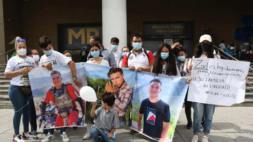 “Venimos a la ciudad a pedir ayuda a las autoridades del Ministerio Público para que nos ayuden a dar con el paradero de mi hijo. Él desapareció hace una semana, se encontraba cantando en Bosque Real, Zacapa, el acompañante nos dijo que a mi hijo lo sacaron a la fuerza del lugar y desde ese día no sabemos nada de él”, dijo Yuliana de León, la mamá del cantante, quien fue acompañada por amigos y familiares que llegaron a protestar desde Guastatoya, lugar de donde son originarios.