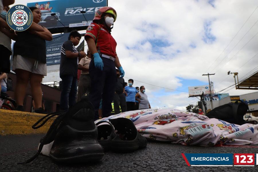 Elementos de los Bomberos Municipales acudieron a la Avenida Petapa y 23 calle de la zona 12 de la Ciudad Capital en donde ocurrió un accidente de tránsito que dejó a dos personas fallecidas.