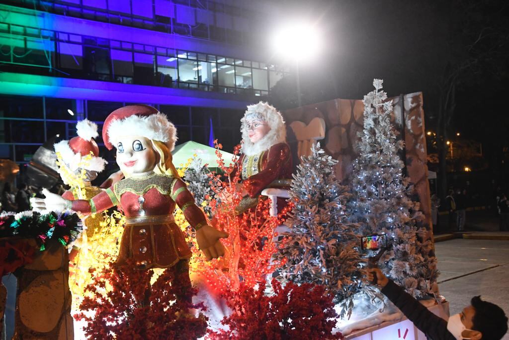 Cada una de las carrozas representa una estampa navideña que se representan bosques nevados con muñecos de nieve, vía de caramelos con duendes y castillo con princesas, así como bailarines, cascanueces y Santa Claus.