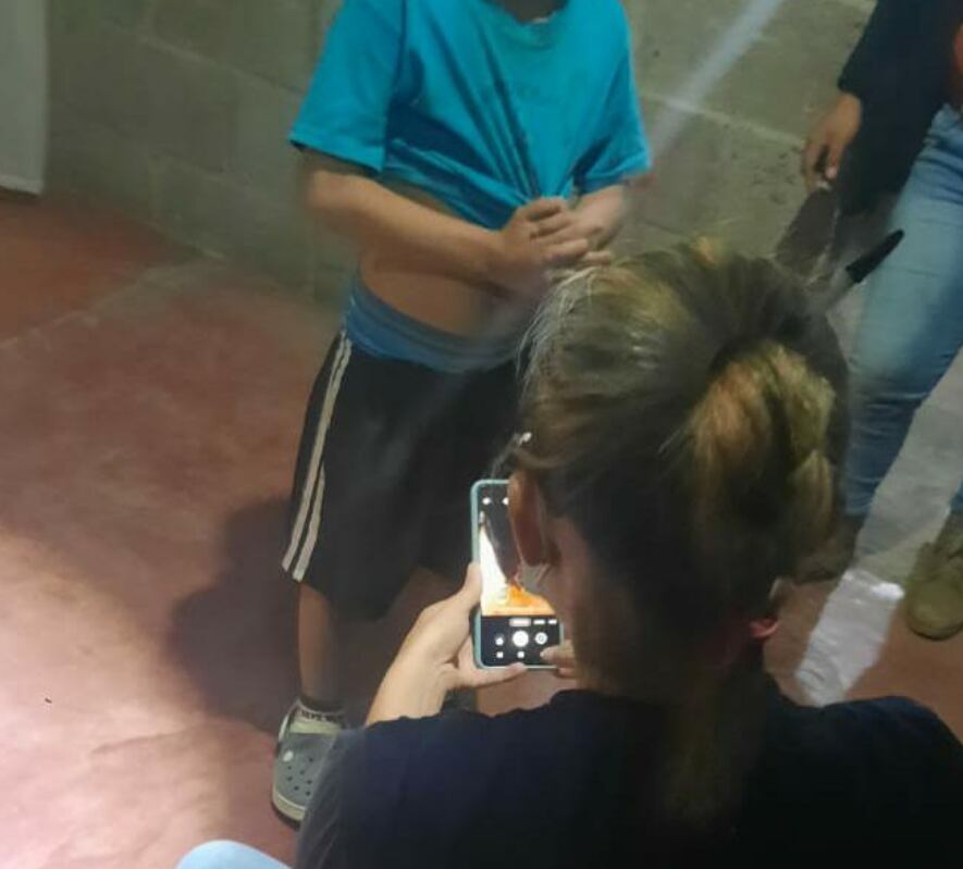La PNC detalló que en redes sociales se publicó un video en que se observa a un niño de 7 años encadenado de los pies, por lo que de inmediato se coordinó con la PGN para efectuar el rescate en una vivienda que se ubica en la calle principal, lote 47, asentamiento Ebenezer, Palín, Escuintla.