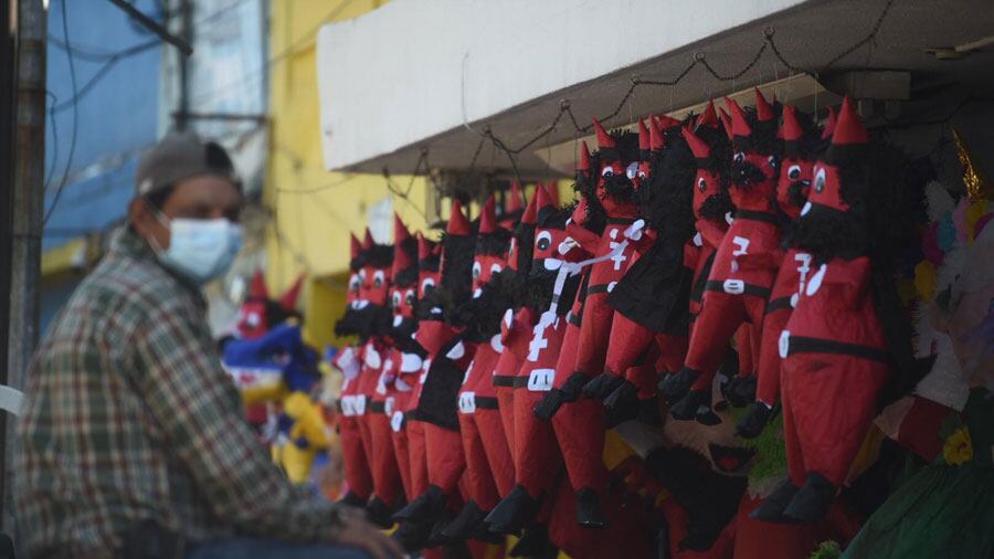 Desde hace varios días, los vendedores comenzaron a elaborar piñatas con diseños de diablos, pues la época exige este tipo de productos debido a la proximidad de la celebración.