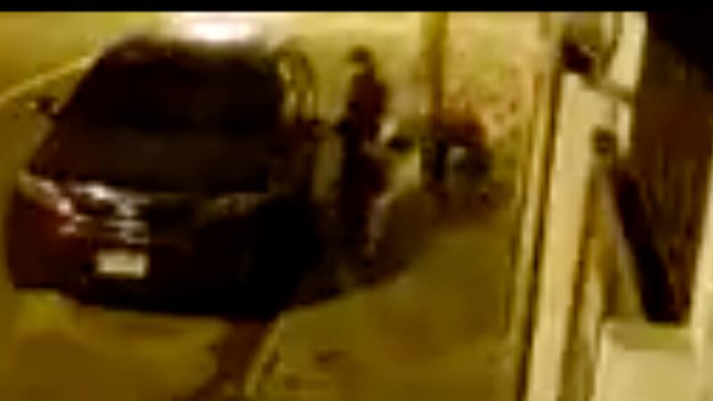 Al inicio de la grabación se observa cómo los dos hombres se quedan parados al lado de la camioneta. Uno de ellos verifica en la rendija del portón para que los propietarios del automotor no se percaten del robo.