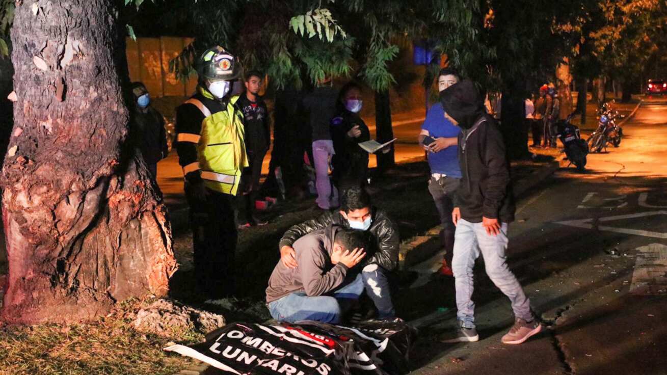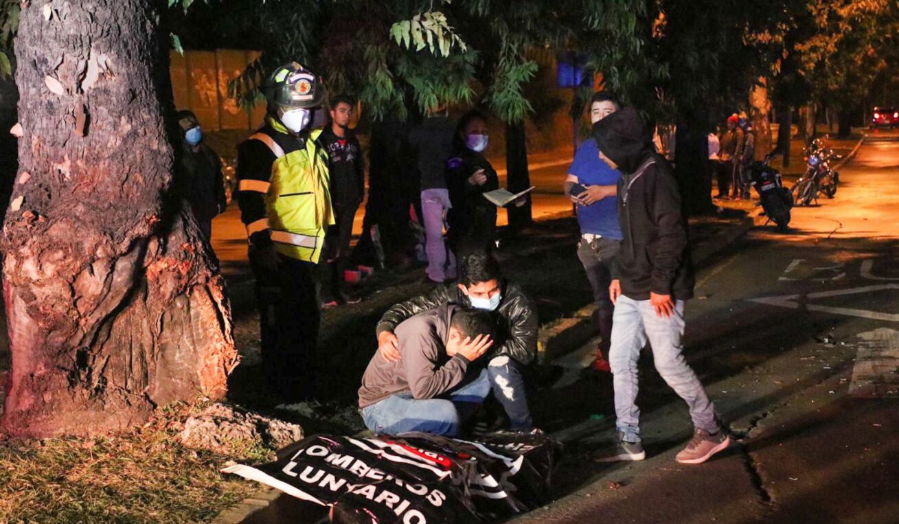Dos motocicletas colisionaron en el bulevar La Pedrera y 22 calle de la zona 6. Bomberos Voluntarios trasladaron a 2 personas con politraumatismos a centro asistencia. Un hombre, que aún no ha sido identificado, fue localizado sin vida en el lugar del accidente.