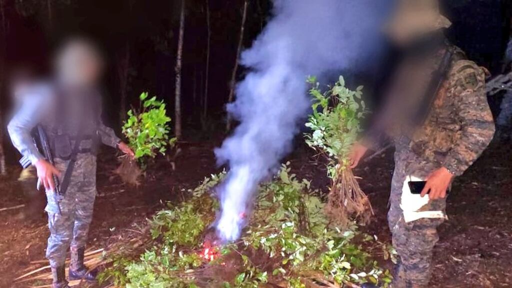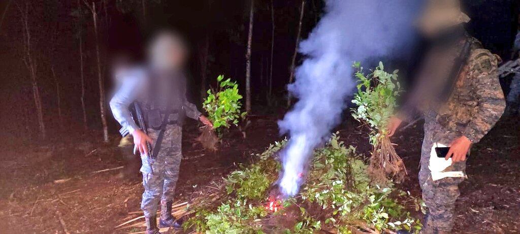 En el caserío Erial del Pilar, en San Luis, Petén, agentes de la Subdirección General de Análisis e Información Antinarcótica de la Policía Nacional Civil (PNC) junto al Ejército de Guatemala localizaron un campo de cultivo de coca con un área aproximada de 1 mil 276.69 metros cuadrados.