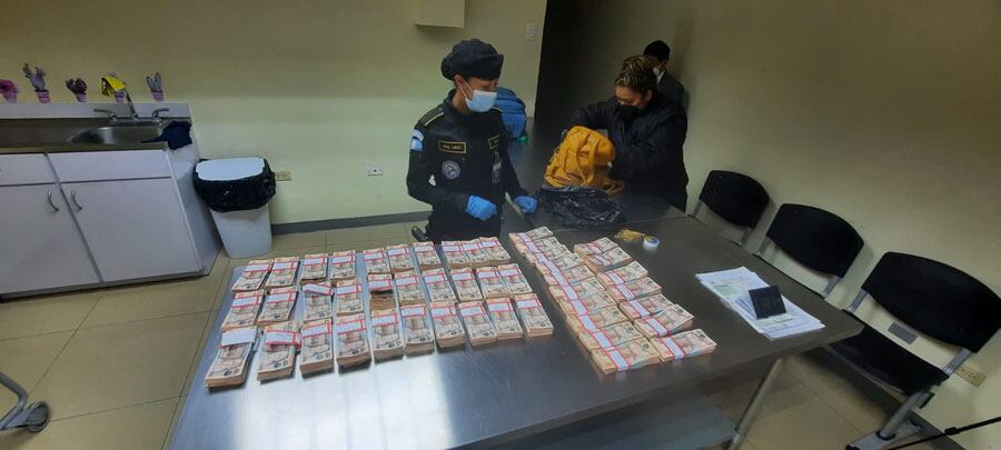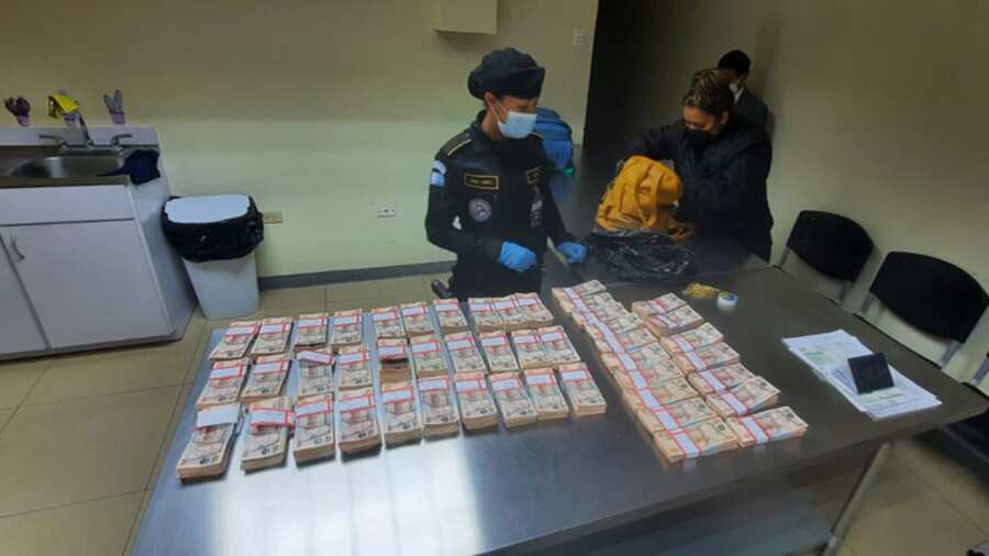 Horas antes, el Ministerio Público había informado horas antes que la Agencia Fiscal Especial del AILA se encontraban haciendo el conteo del dinero en coordinación con agentes de la Subdirección General de Análisis de Información Antinarcótica, de la PNC.