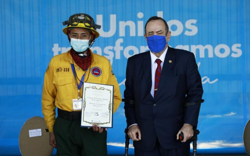 “Quiero felicitarlos por el 25 aniversario de esta institución. En este tiempo han fortalecido sus capacidades y han sensibilizado a la población para prevenir algún desastre”, señaló Giammattei.