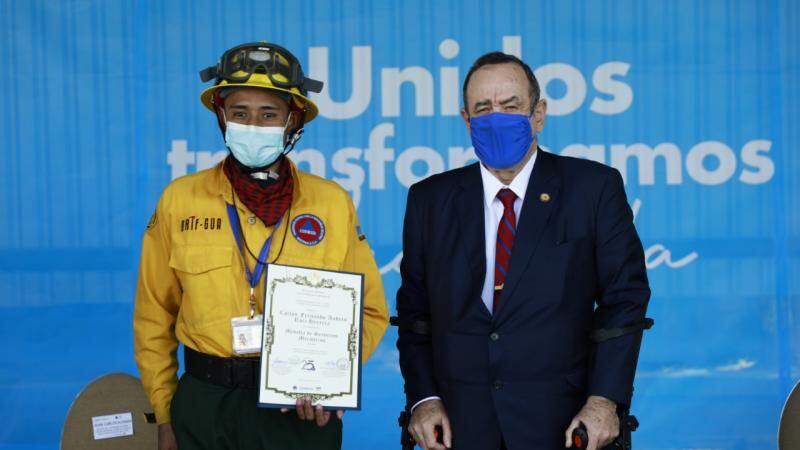 La medalla póstuma por servicios distinguidos fue entregada a los familiares de tres bomberos que fallecieron durante su labor en un incendio en Mixco: