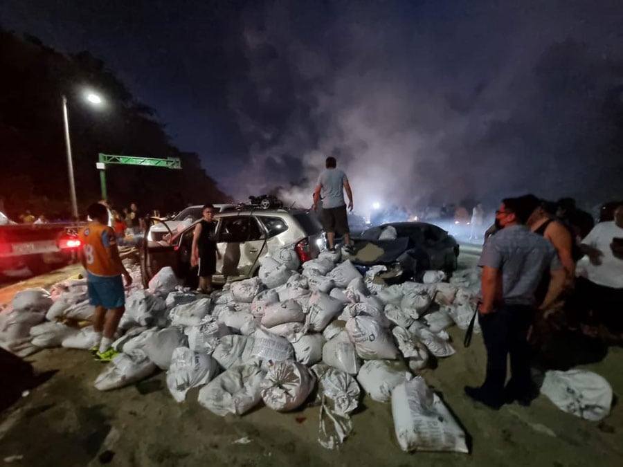 La dramática escena coincide con uno de los vehículos que quedó volcado y prácticamente calcinado en dicho lugar.