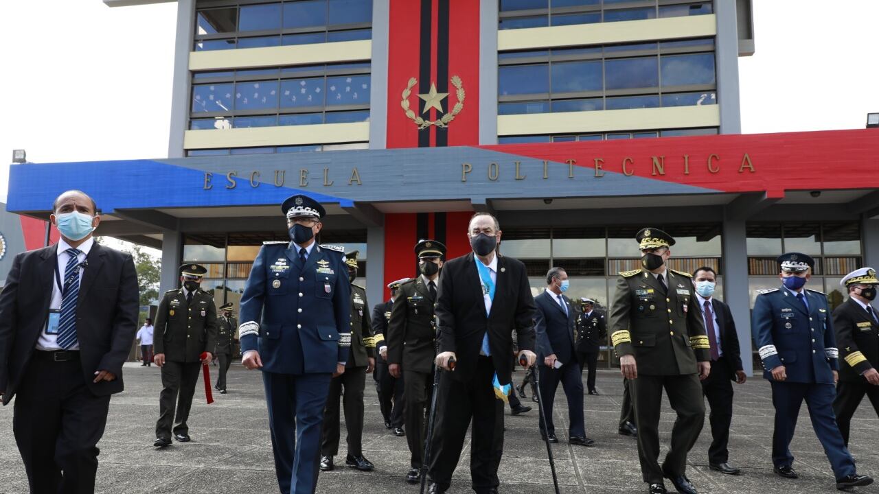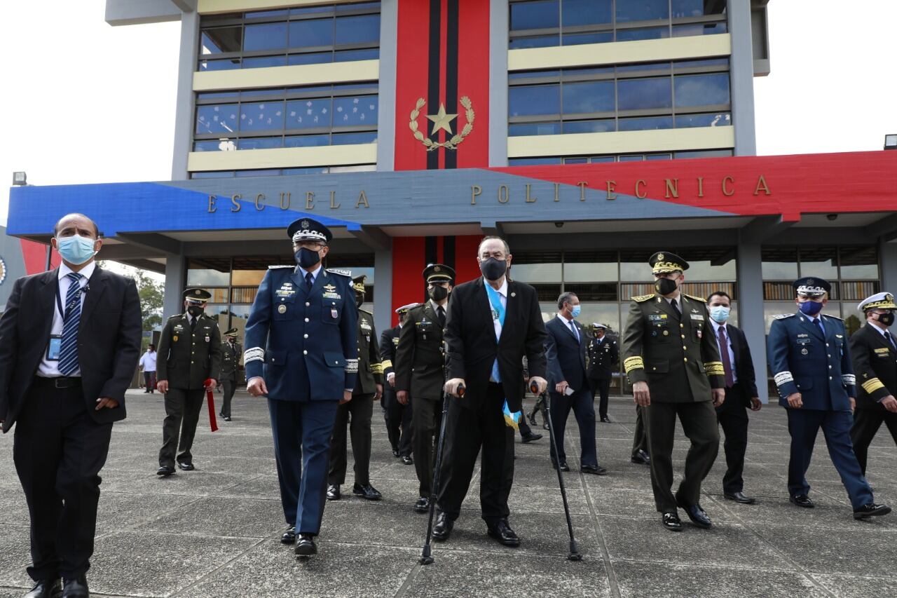 El presidente Alejandro Giammattei participó este viernes en la graduación de la promoción 157 de damas y caballeros cadetes de la Escuela Politécnica, en San Juan Sacatepéquez.