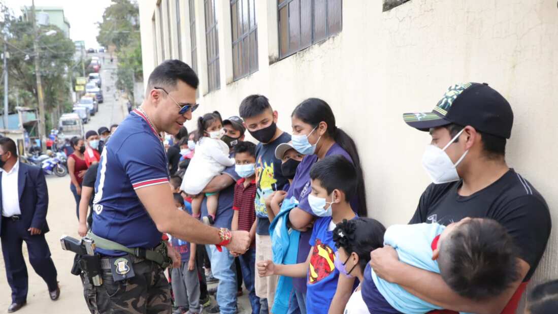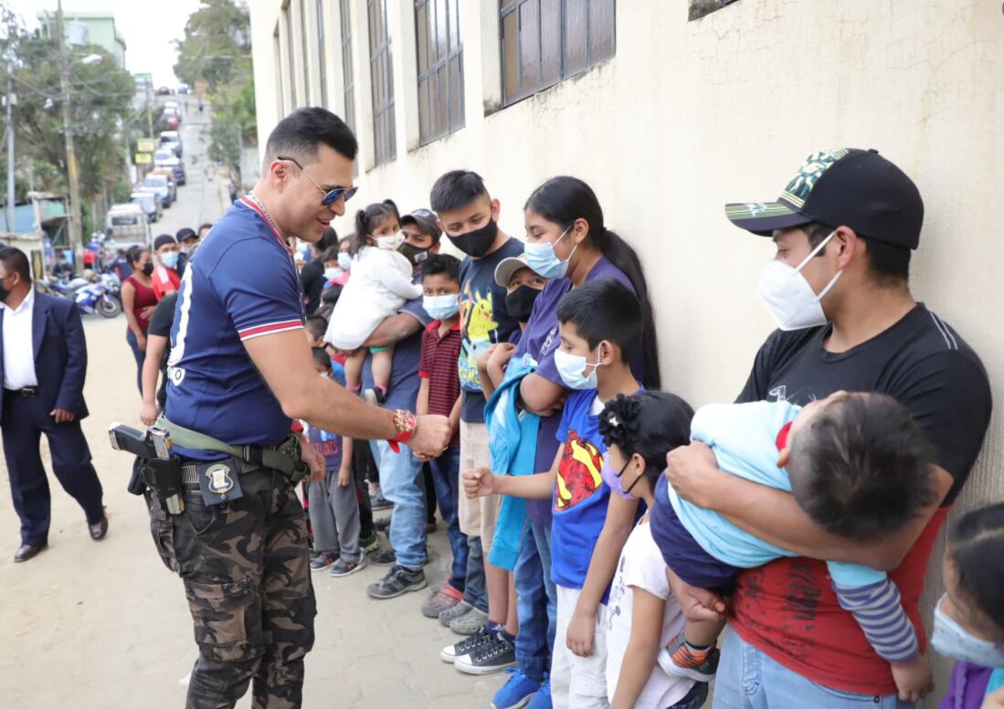 En el video, transmitido en vivo por Facebook en la cuenta de Bran el miércoles, se observa al jefe edil armado repartiendo muñecas y camiones de juguete a niños de la aldea El Campanero de Mixco, al oeste con la capital.
