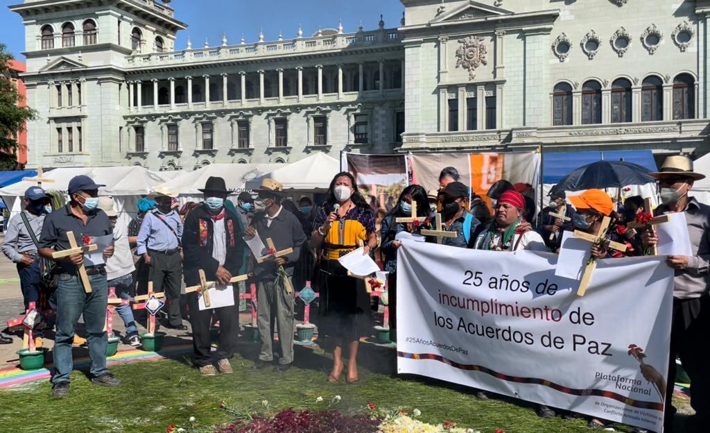 Mientras esto sucedía, la Plataforma Nacional de Organizaciones de Víctimas del Conflicto Armado Interno, luego de efectuar una ceremonia maya en la plaza de la Constitución, señalaron directamente al presidente Giammattei de cambiar una agenda de la paz para imponer una agenda de corrupción y lo señalan de desmantelar instituciones encargadas de velar por el cumplimiento de los Acuerdos de Paz.
