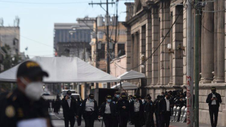 El despliegue policial también bloquea el paso vehicular desde la 5.a hasta la 11.a calle y desde la 7.a hasta la 10.a avenida de la zona 1.
