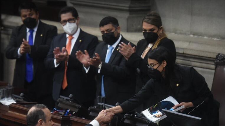 El presidente Alejandro Giammattei entregó este viernes 14 de enero de 2022, el informe de su segundo año de gobierno en el Congreso de la República. En donde también se llevó a cabo la sesión solemne en la que se dio posesión a la nueva junta directiva.