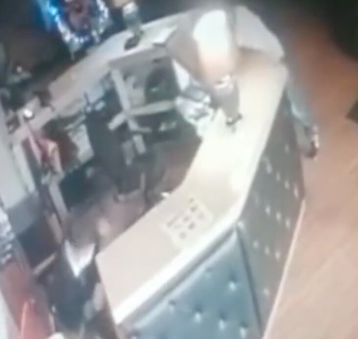 En la grabación captada por las cámaras de seguridad se observa cuando el sicario ingresó al hotel, se acerca a la recepcionista y le dispara en varias ocasiones.
