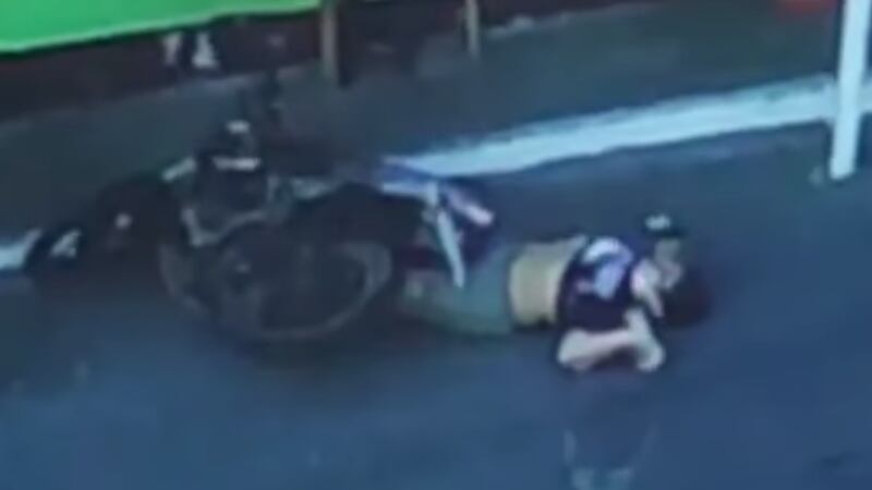 El vehículo de dos ruedas cayó encima de la mujer, por lo que de inmediato el motorista regresó al lugar, levantó su automotor y aparentemente se fue del lugar.