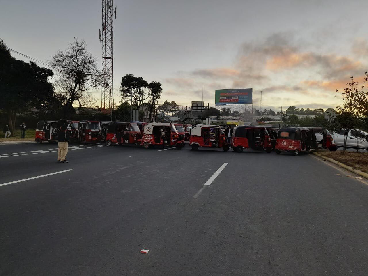 En el kilómetro 50 de la ruta Interamericana, en jurisdicción de Chimaltenango, los microbuses se alinearon sobre la carretera principal tomando ambas vías.
