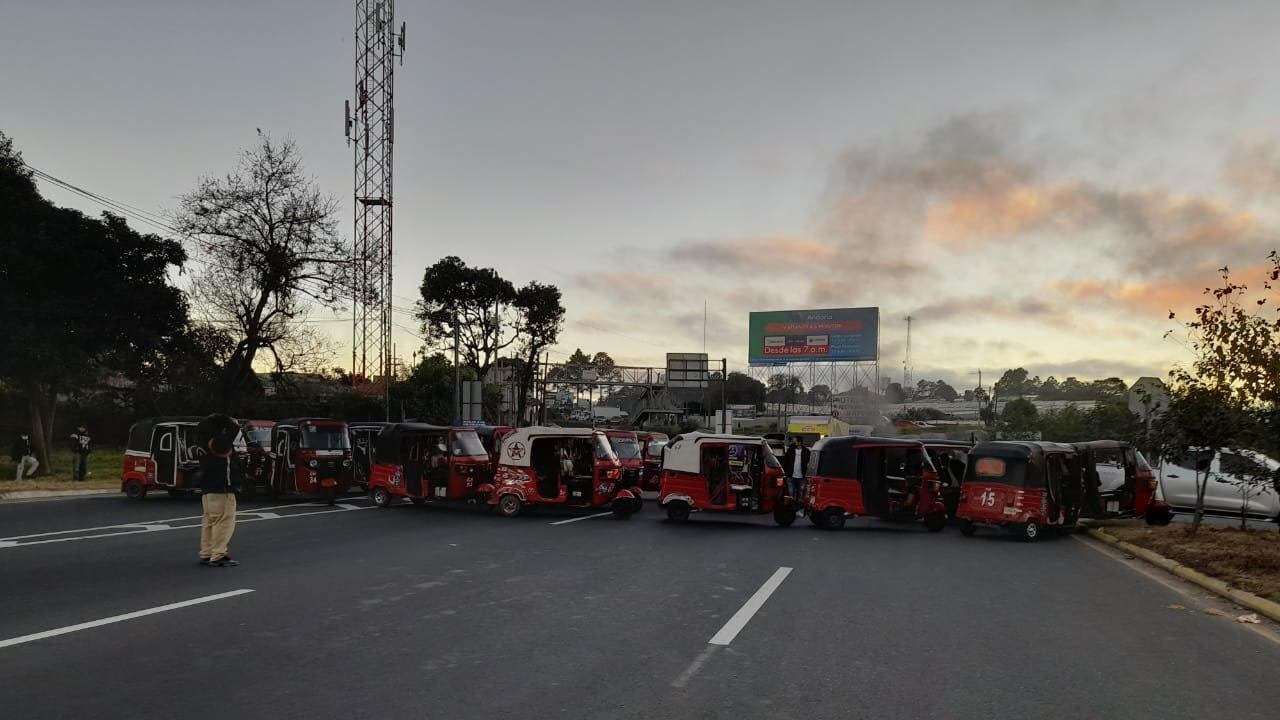 “Estamos todos los microbuses, fleteros y taxistas, para pedirle al Gobierno que tome atención sobre el seguro y el tema de la gasolina”, expuso uno de los manifestantes. La petición es que se derogue el acuerdo gubernativo 17-2020 y la baja al precio del combustible.