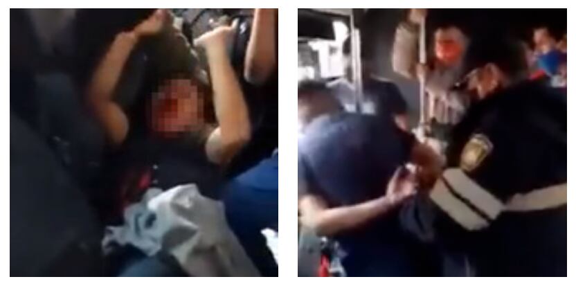 En la grabación, que se hizo viral en las redes sociales, se puede observar al supuesto asaltante, tendido en la unidad de transporte y con la cara ensangrentada, mientras es retenido por varios hombres, quienes le gritan y lo insultan.