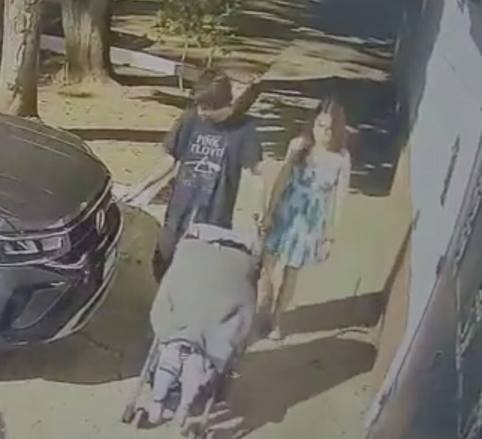 En la grabación se observa que el hombre, aparentemente lleva a un menor en el carruaje, el cual entrega a una mujer para robar la insignia del carro.