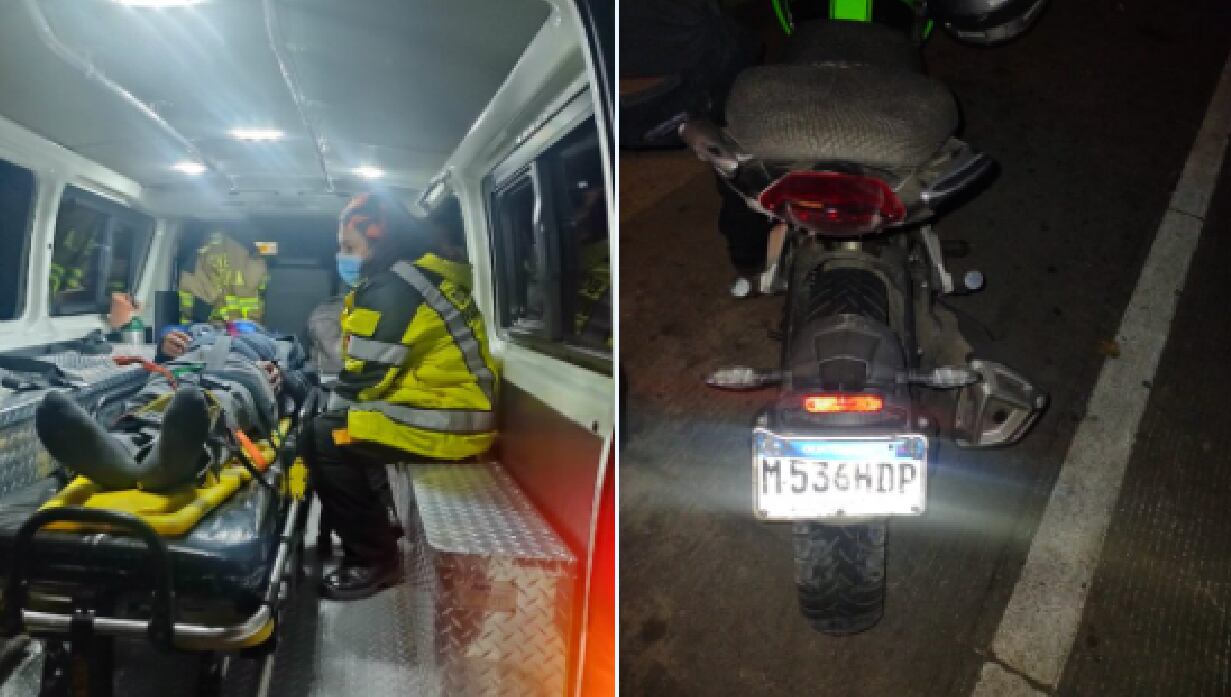 El motorista presentaba heridas en distintas partes del cuerpo. Fue trasladada a la emergencia del Hospital Nacional de Antigua Guatemala.