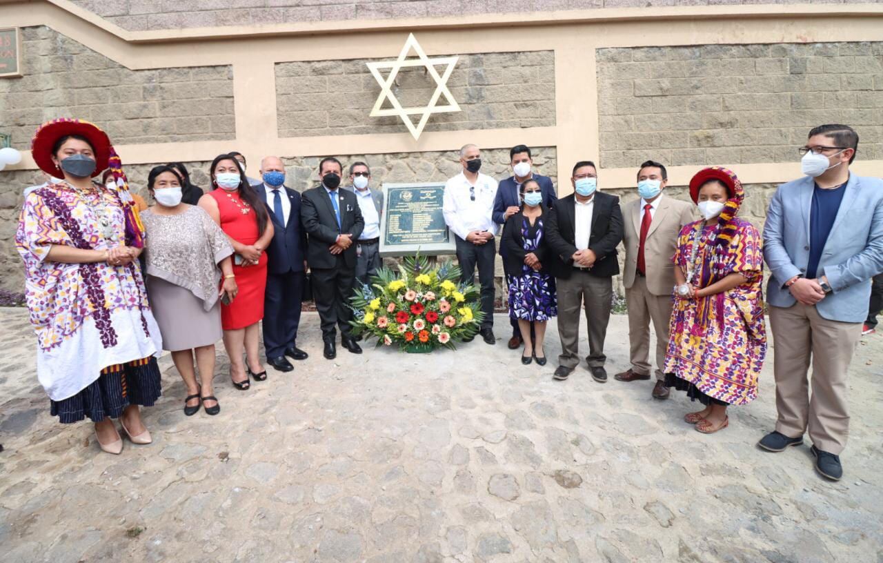 La develación de la placa estuvo a cargo del embajador de Israel en Guatemala, Mattanya Cohen, así como el alcalde municipal Juan Fernando López, autoridades del consejo el gobernador departamental Erick Tzún de León y el presidente de la Liga de Amistad Parlamentaria Guatemala – Israel, diputado Fidel Reyes Lee.