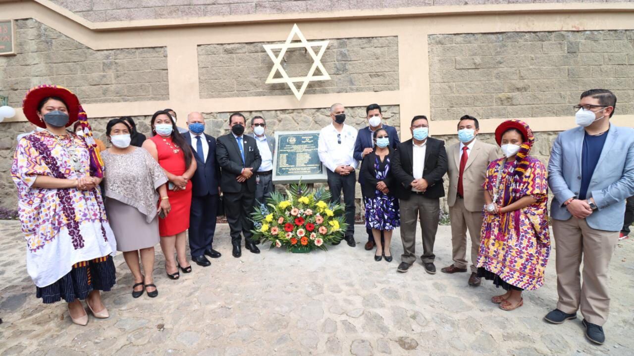 La develación de la placa estuvo a cargo del embajador de Israel en Guatemala, Mattanya Cohen, así como el alcalde municipal Juan Fernando López, autoridades del consejo el gobernador departamental Erick Tzún de León y el presidente de la Liga de Amistad Parlamentaria Guatemala – Israel, diputado Fidel Reyes Lee.