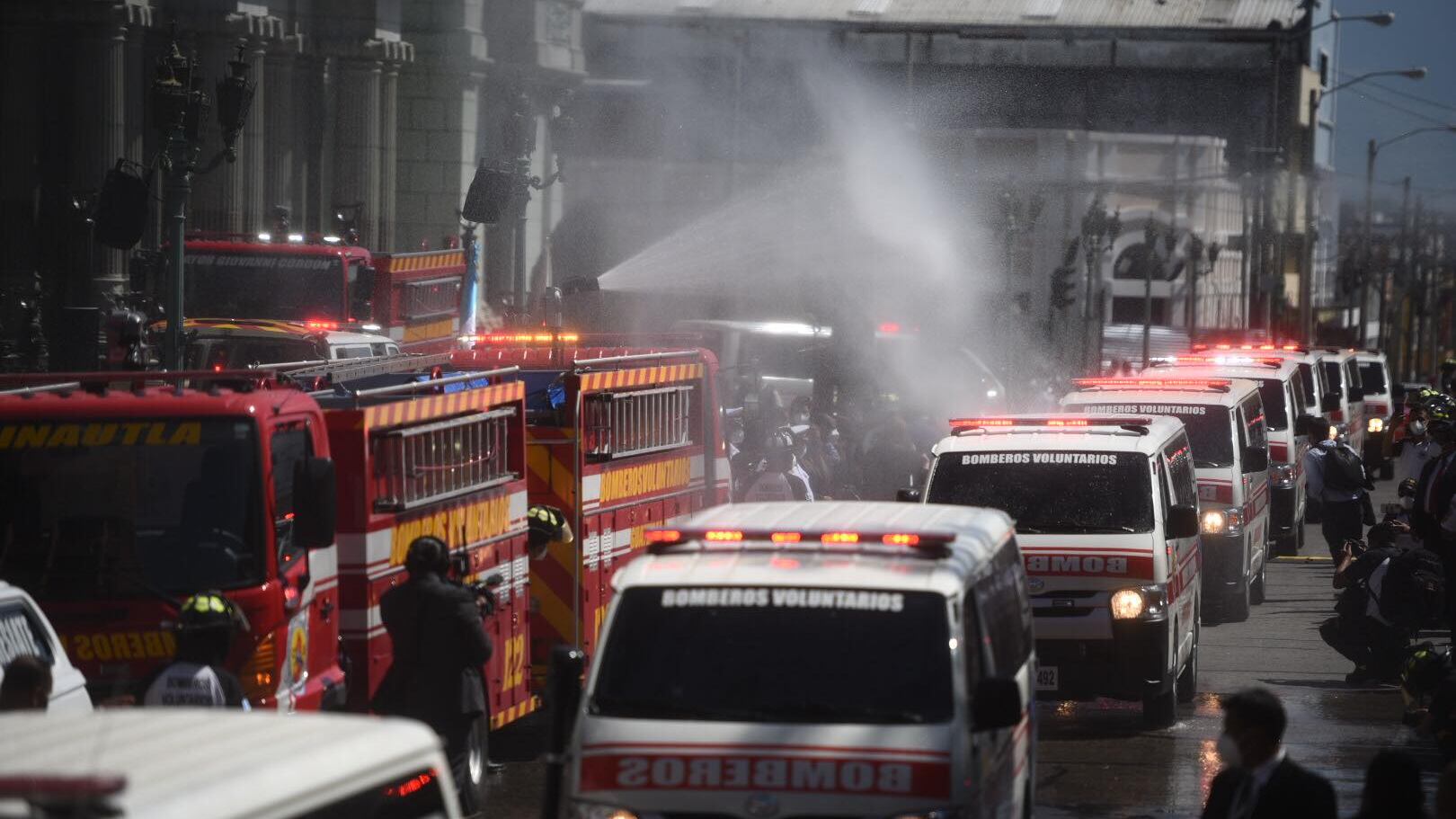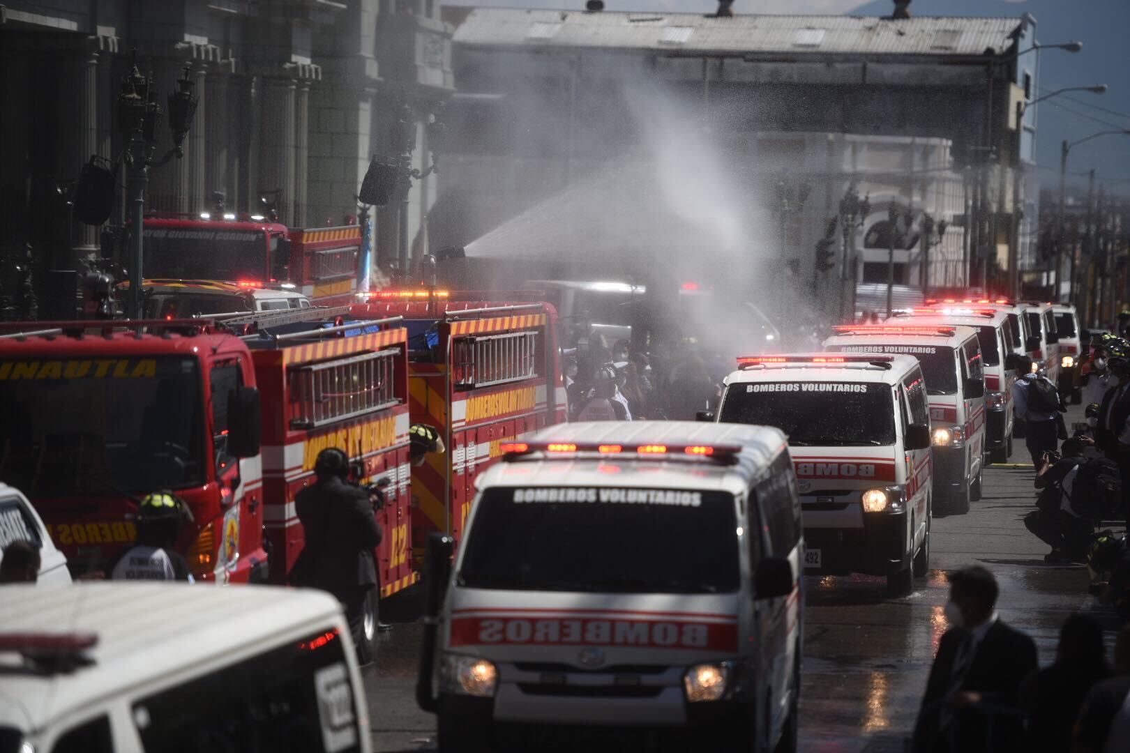 En un acto en la Plaza de la Constitución en el que estuvieron presenten los altos mandos y bomberos que forman parte de esa institución, se observaron las unidades de emergencia en fila frente al Palacio Nacional de la Cultura. Durante el evento participó el presidente Alejandro Giammattei.