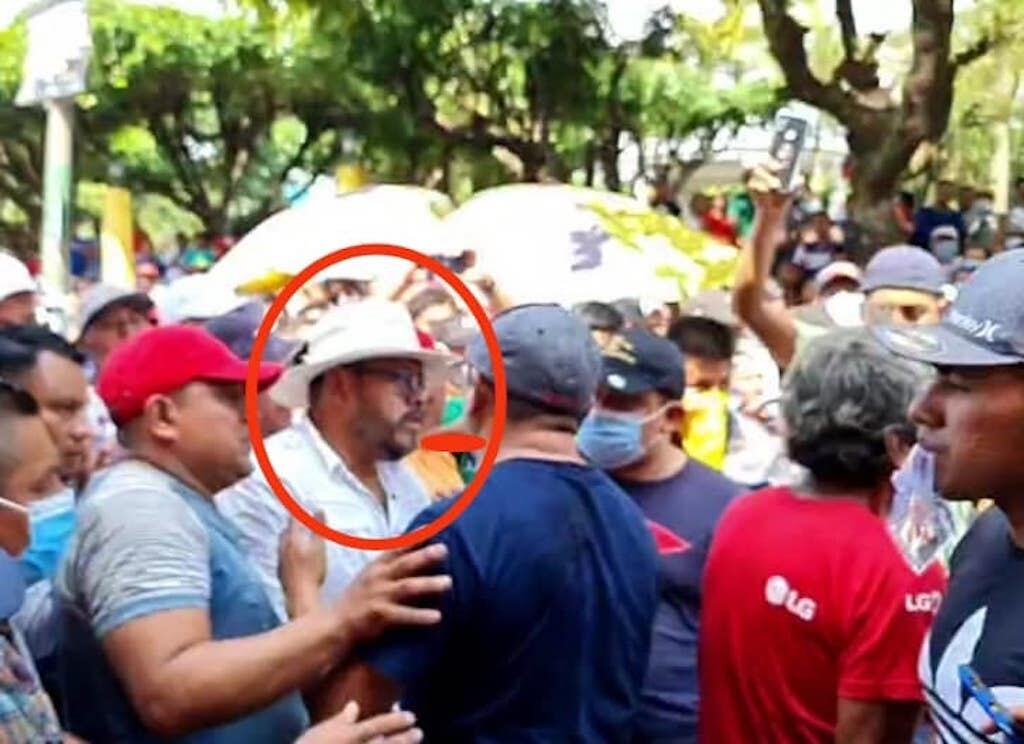 El alcalde de Samayac, Suchitepéquez, Felipe Hernández, perdió la postura y se fue a los golpes con vecinos que manifestaban frente a la municipalidad de la localidad.
