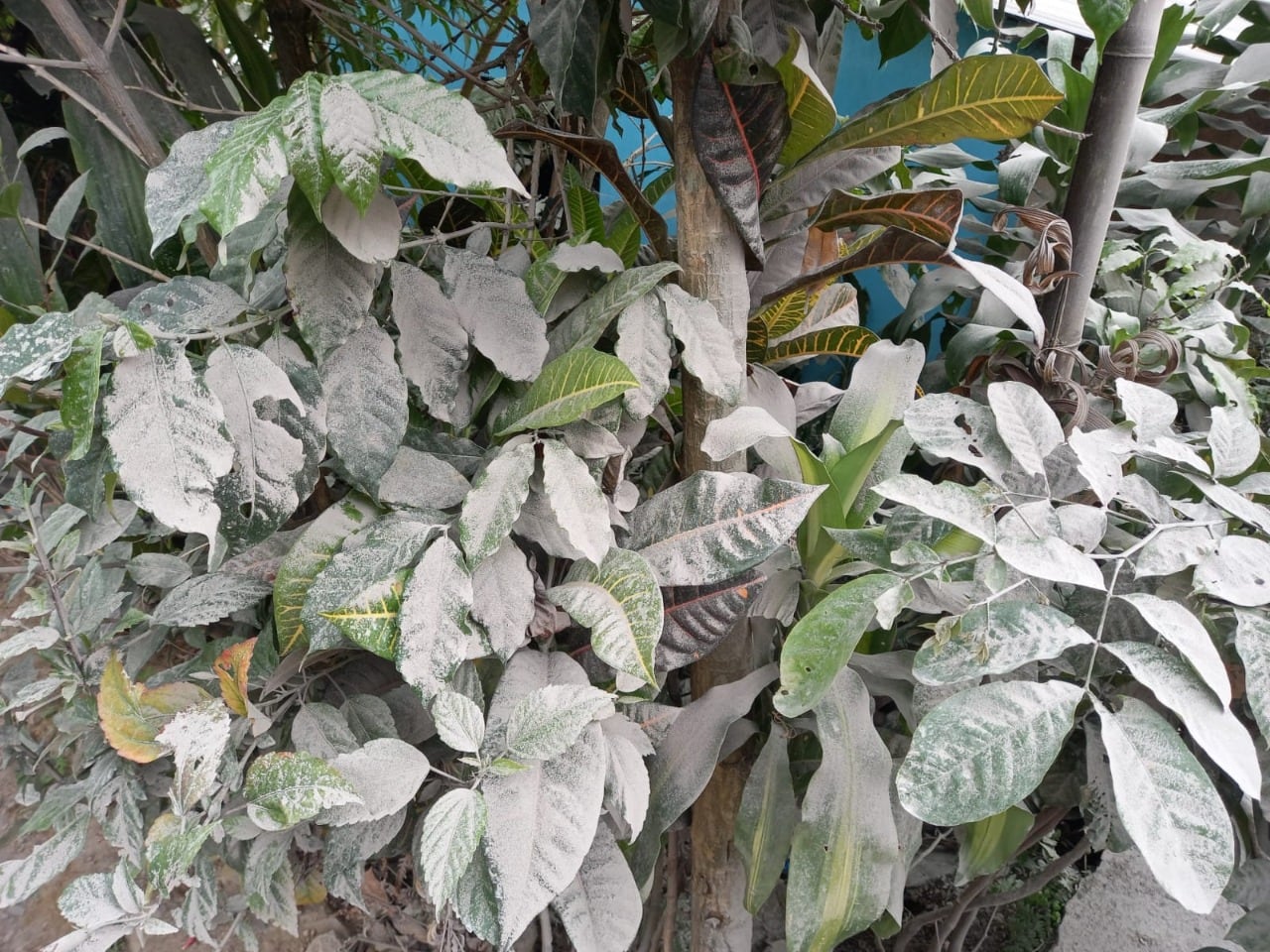 - Eliminar el exceso de ceniza del follaje y flores, sacudiendo suavemente las ramas de la vegetación, esto evitará que se quiebren por el peso.