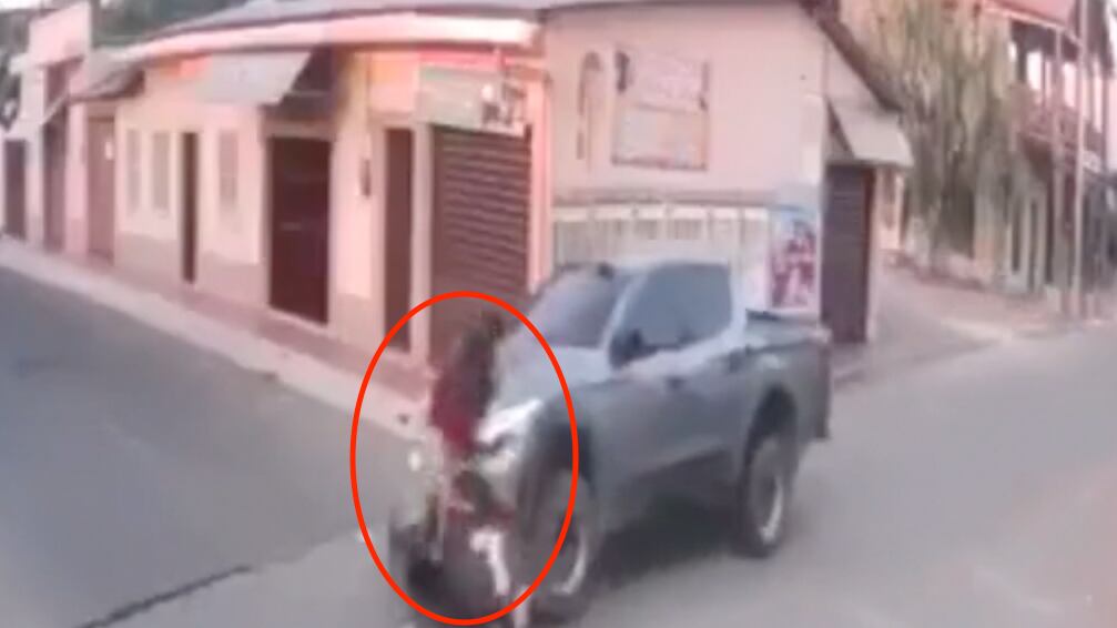 La grabación muestra el momento exacto cuando se registra el choque. La víctima salió por los aires y cayó unos metros adelante con varias heridas en el cuerpo. Su motocicleta sufrió varios daños.