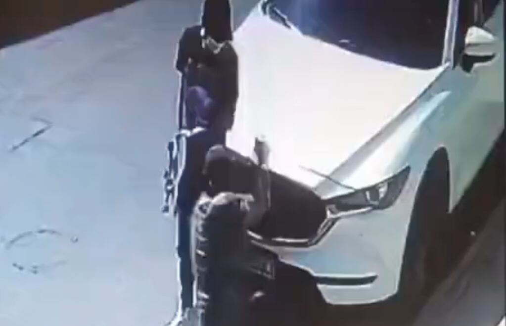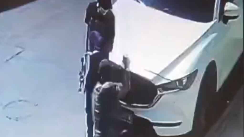 Las grabación muestra el momento en que uno de los hombres se acerca a la parte de enfrente de la camioneta, mientras el otro, en patineta, se coloca al frente para cubrir mientras su cómplice retira el emblema. El robo fue cometido en unos 20 segundos. Al retirar el emblema, de inmediato huyeron del lugar por el mismo lado por donde llegaron.