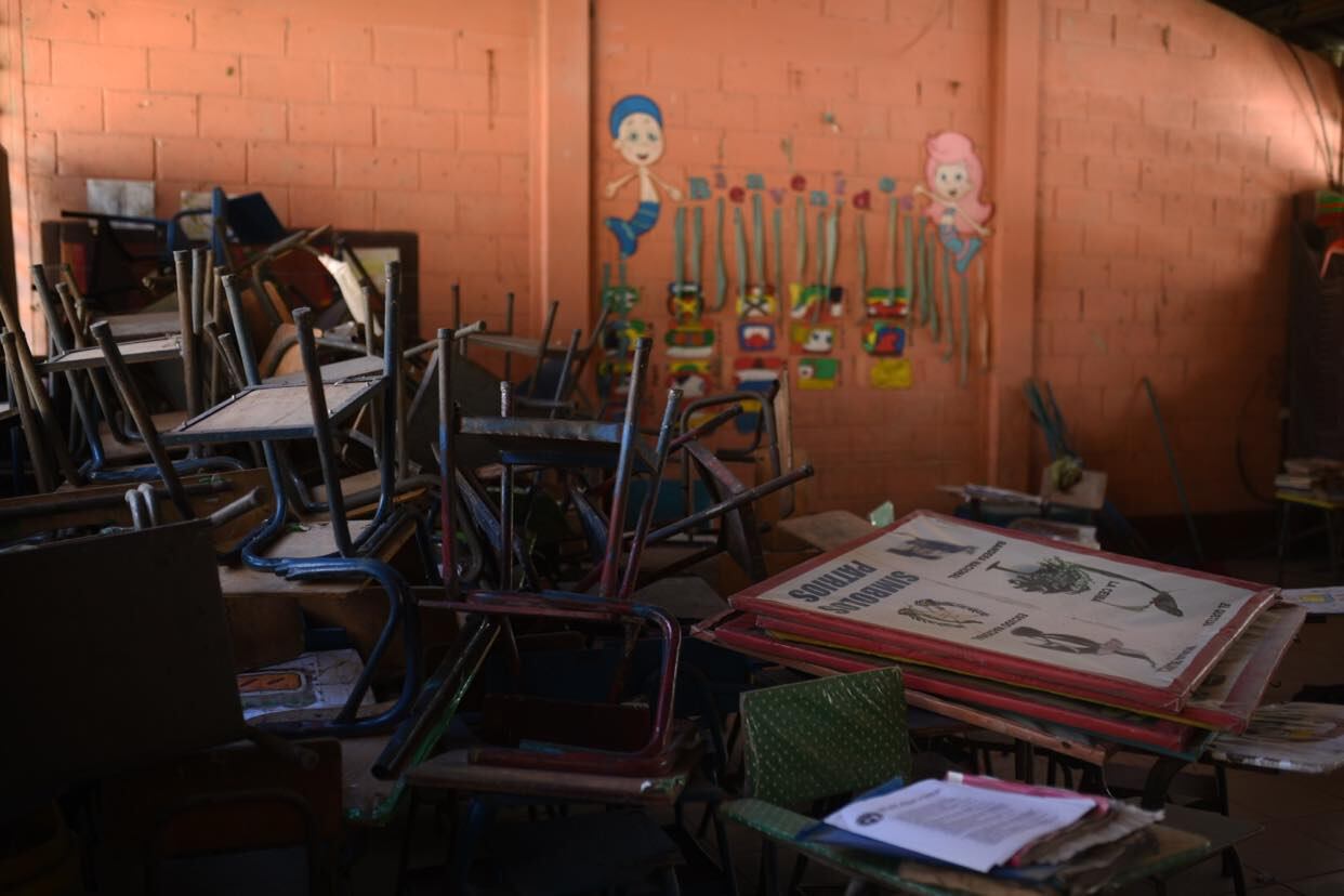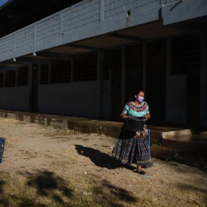 Mientras tanto, las madres de alumnos de la Escuela Oficial Irene Sazo Santizo, ubicada en Santa Cruz en Chinautla, se reunieron para limpiar los pupitres y las aulas que por casi dos años permanecieron vacías.