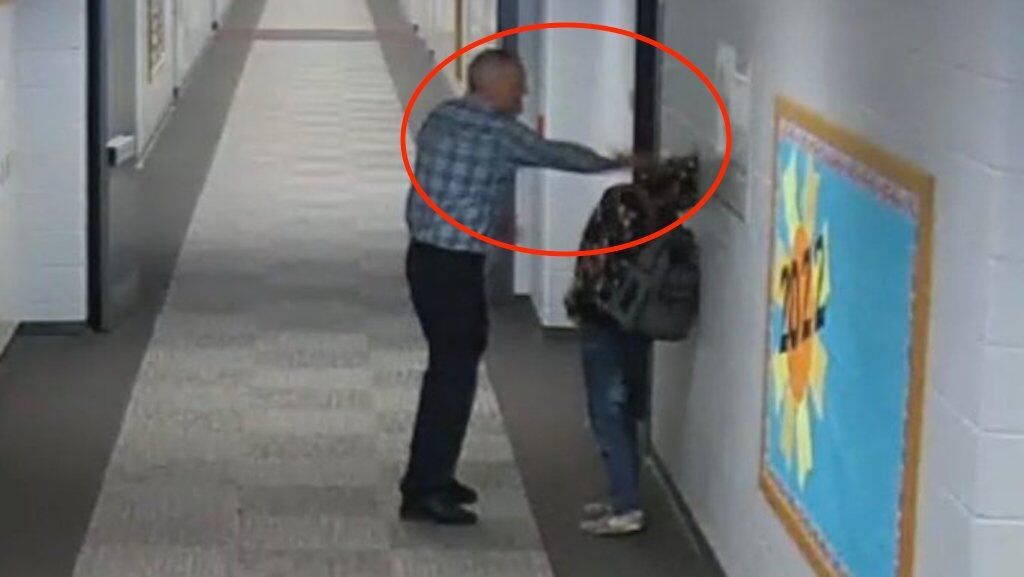El momento quedó captado por las cámaras de seguridad del centro educativo del norte de Indiana, que al difundirse se convirtieron en toda una tendencia, principalmente por el violento comportamiento del profesor. El distrito escolar publicó dicho video, donde aparece el maestro agarrando al estudiante por la mochila y empujándolo contra la pared de manera amenazante.