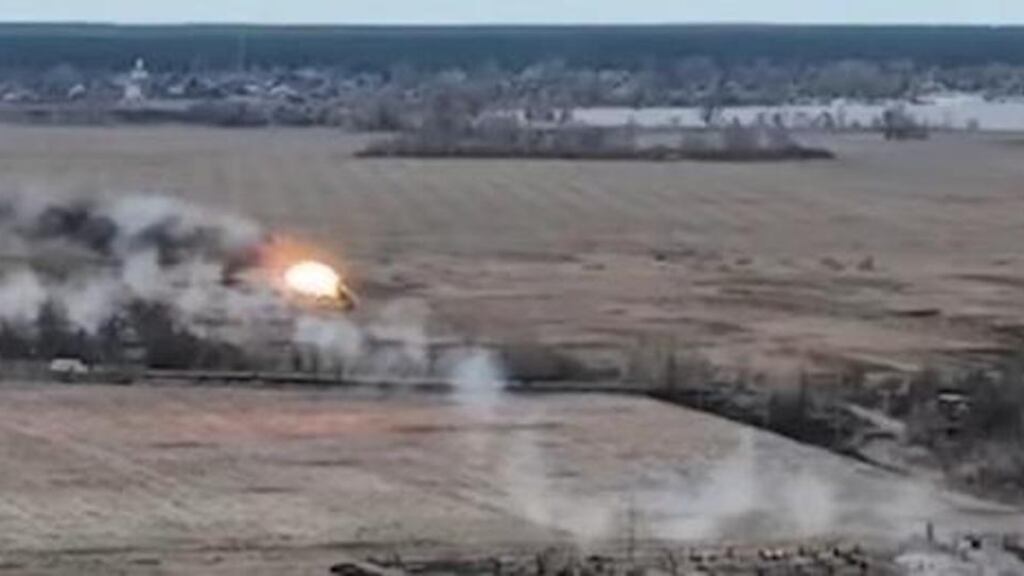 El Ministerio de Defensa de Ucrania compartió imágenes del momento en el que un helicóptero ruso se precipita en llamas en un campo del país invadido. En las imágenes que circulan hoy en varios medios internacionales, se ve al vehículo aéreo prendido en fuego mientras cae y explota como una bola de fuego en el suelo.