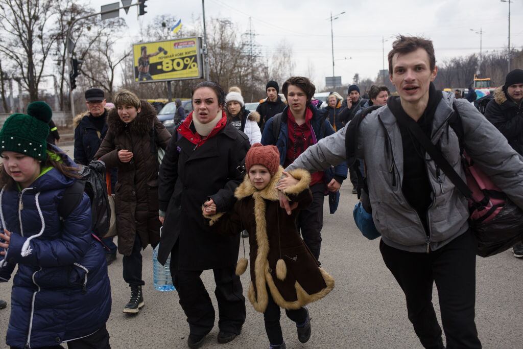 En Irpin, una pequeña localidad en las afueras de Kiev parcialmente controlada por las fuerzas rusas, se abrió un corredor humanitario oficioso para que miles de habitantes pudieran huir a través de un puente improvisado y por una carretera custodiada por soldados ucranianos y voluntarios. Niños, ancianos y familias se apresuraban a meterse en atestados autocares y camionetas, con la esperanza de sobrevivir.