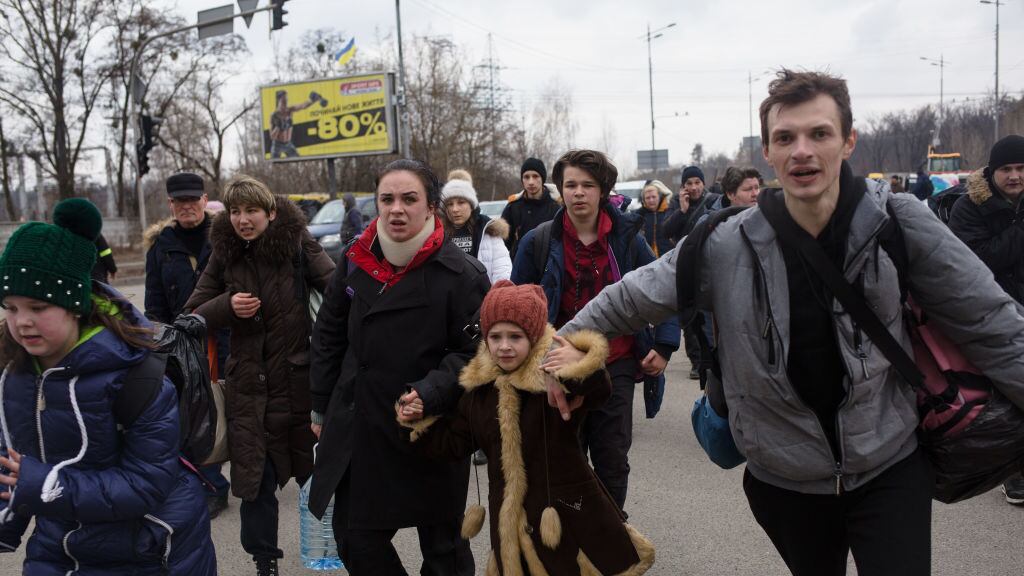 En medio del conflicto, la situación humanitaria se agrava día tras días en Ucrania, con varias ciudades asediadas en las que los víveres comienzan a escasear y de las que la población intenta salir a toda costa. En la capital, los soldados ucranianos fueron vistos preparándose ante un posible ataque ruso. “La capital se prepara para defenderse”, dijo el alcalde de Kiev, Vitali Klitschko. “¡Kiev resistirá! ¡Se defenderá!”, añadió.