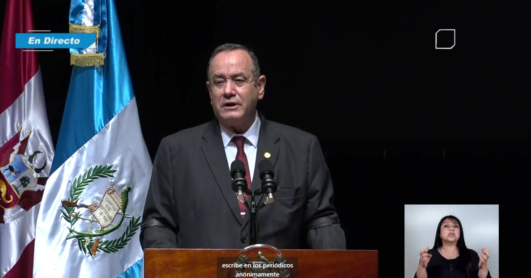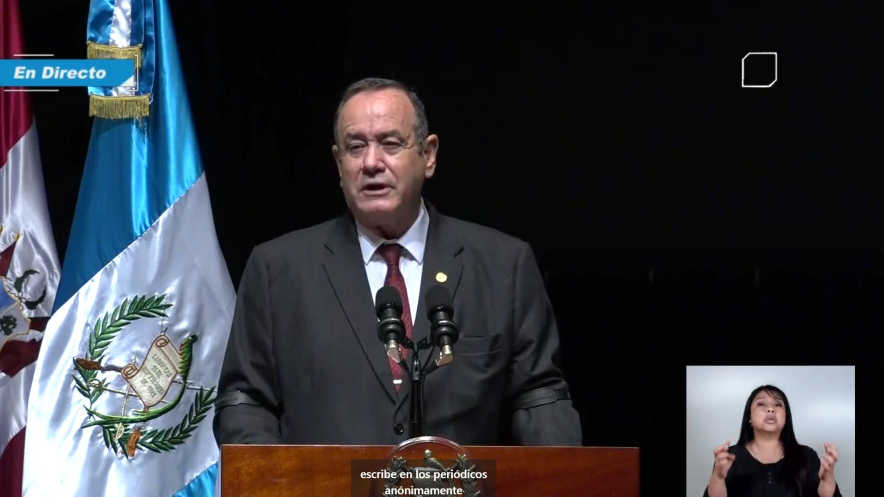 “He sido amenazado por una nación que se considera poderosa, por esto, porque su agenda no va con la nuestra”, dijo Giammattei durante el evento que se llevó a cabo en el Teatro Nacional.
