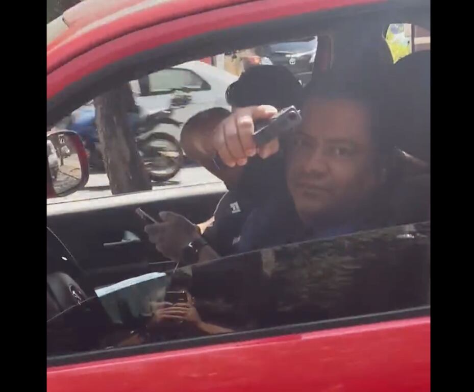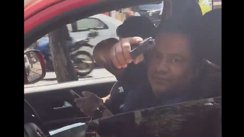 En las imágenes se puede apreciar que un hombre bajó su vidrio, segundos más adelante sacó una pistola y amenazó al conductor. Sin embargo, cuando se percató que era grabado decidió subir su cristal y huir del lugar. En el video se observa que el pistolero iba acompañado.