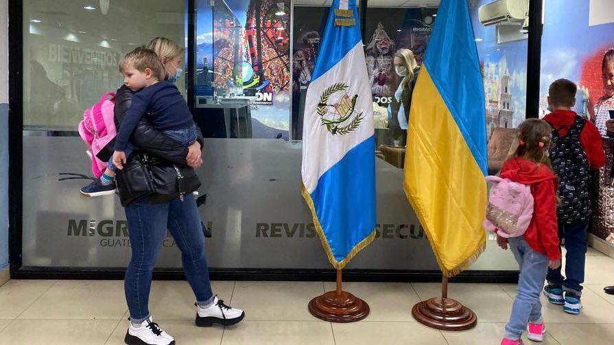 Autoridades guatemaltecas recibieron este viernes en el aeropuerto de la capital a las dos primeras familias de ciudadanos ucranianos que huyeron de su país tras la invasión de Rusia, informó el Instituto de Migración (IGM).