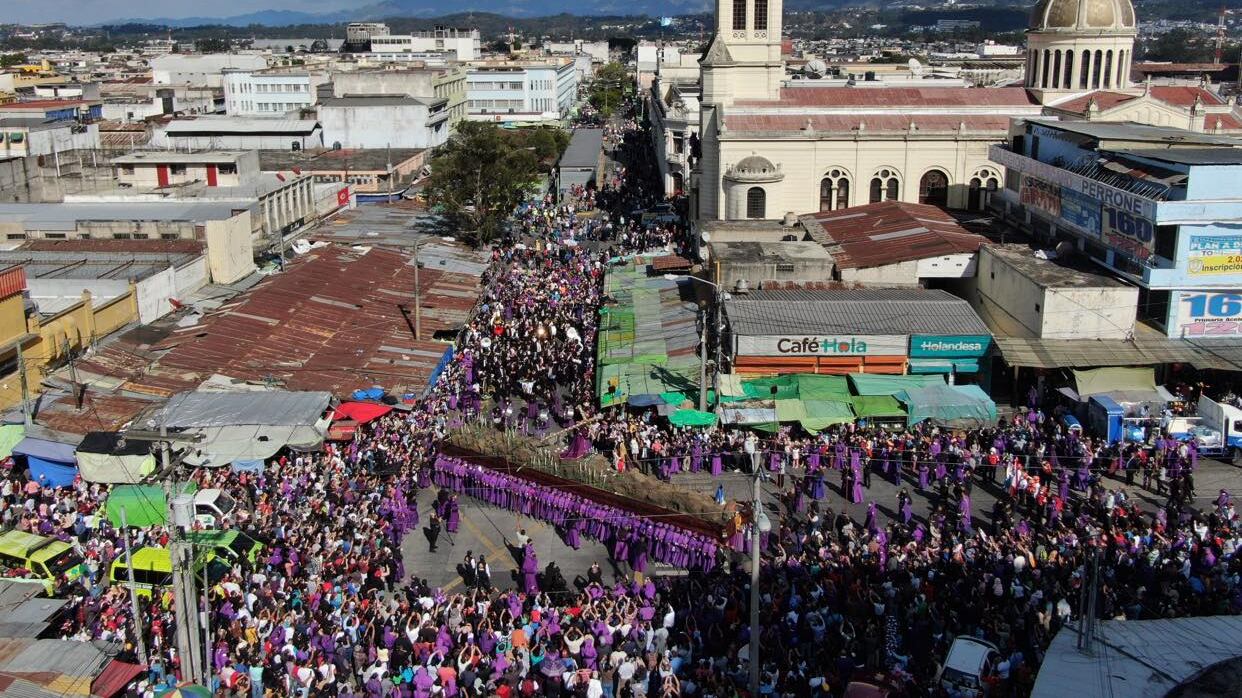 Tras abandonar la iglesia, el cortejo procesional tomó la sexta avenida para llegar hacia un costado del Teatro Nacional y así tomar el puente El Amate.