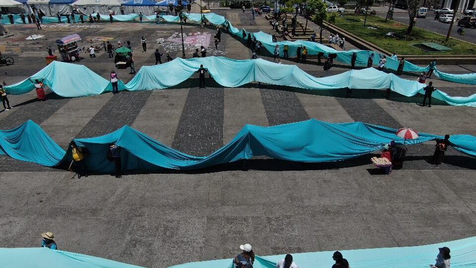 El 25 y 26 de marzo se llevó a cabo la Cumbre Plurinacional con comunidades que han estado resistiendo el despojo del agua. El objetivo de la intervención artística fue formar un río de gente con dos mil metros de tela, en la que participaron decenas de personas de diferentes puntos del país.