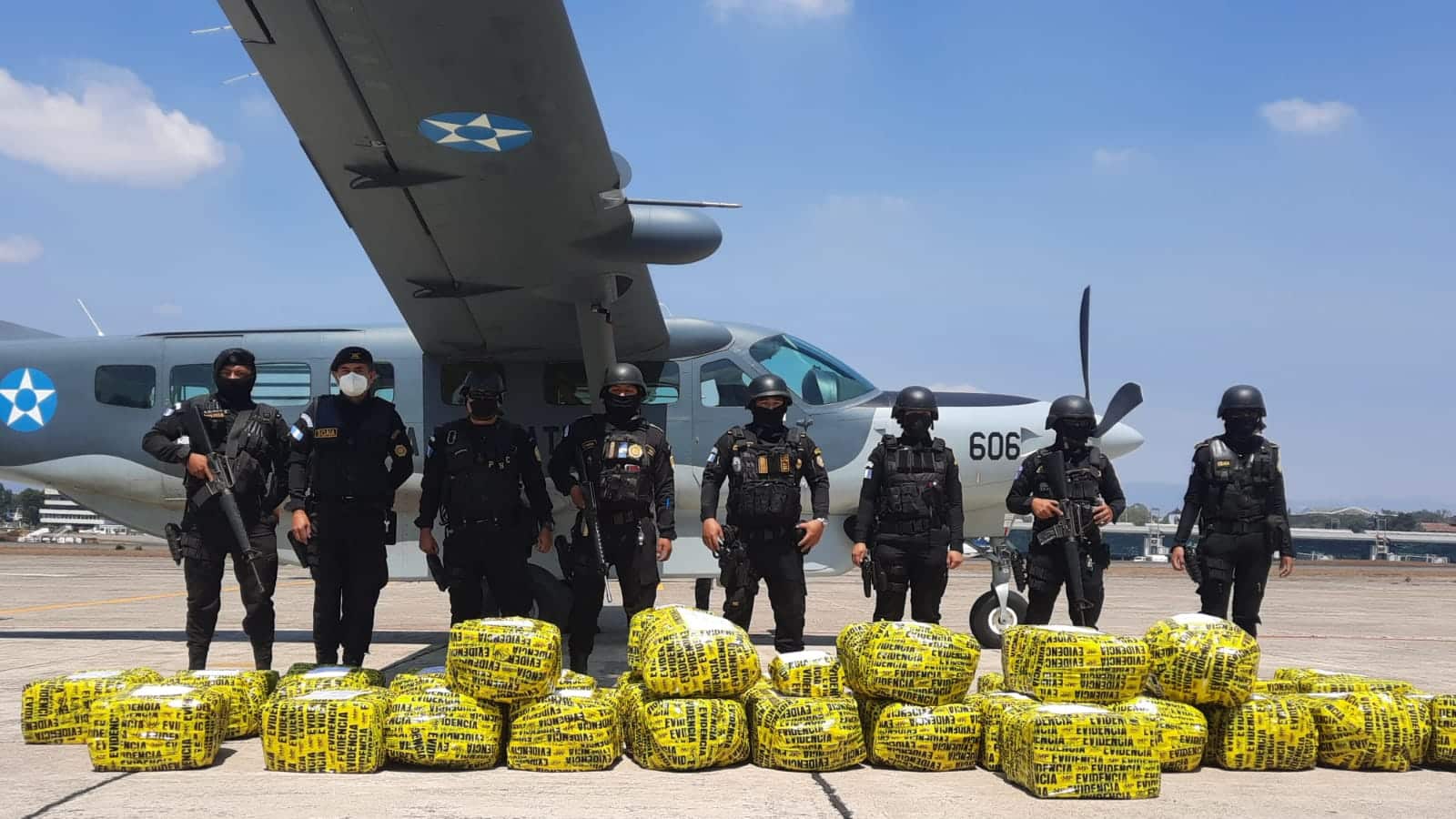 Miembros del Ejército localizaron la droga los alrededores de una zona donde la aeronave se precipitó a tierra, en la aldea Cumbre de Chacalte Jabalí, en Purulhá.