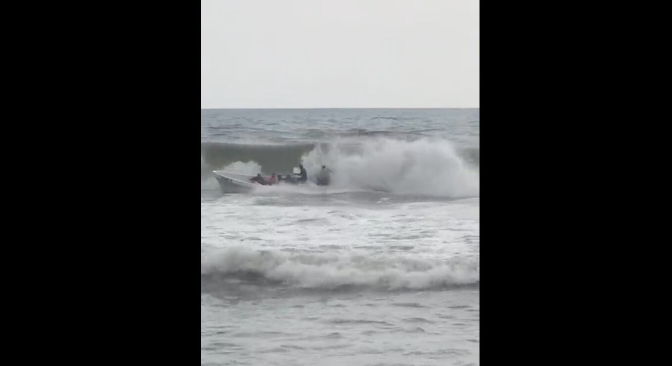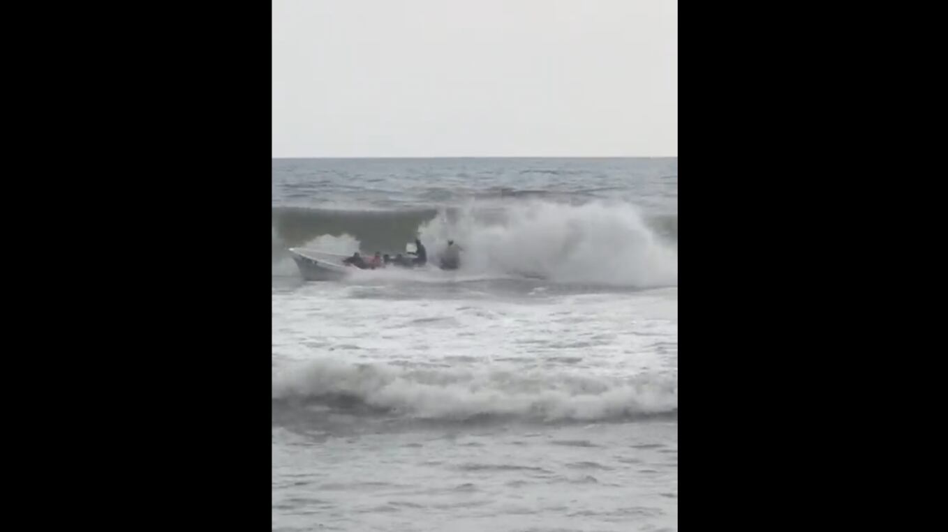 El momento quedó captado por un usuario que se encontraba en ese sector. En las imágenes se observa la embarcación transportándose por las olas de la referida playa y por la fuerza del agua quedó volcada.