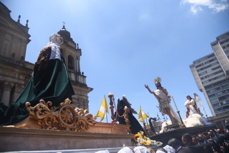Luego de que Jesús Resucitado fuera llevado en hombros por la séptima avenida y mientras que la Virgen de la Alegría por la sexta avenida, se realizó el “Encuentro” frente a Catedral Metropolitana.