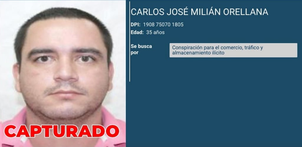La Policía Nacional Civil (PNC) reportó este sábado, 23 de abril de 2022, la captura de un hombre acusado de violación, incluido en la lista de los 100 más buscados en el país. Se trata de Carlos José Milián Orellana, alias “Chucho”, acusado del delito de comercio, tráfico y almacenamiento ilícito, por lo que fue trasladado a los juzgados correspondientes.
