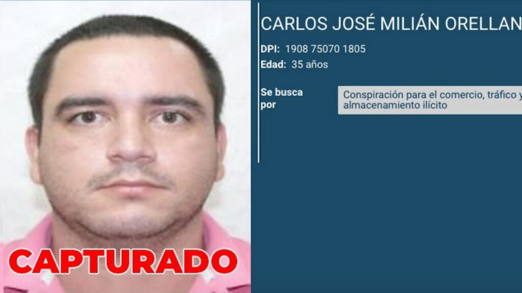 La Policía Nacional Civil (PNC) reportó este sábado, 23 de abril de 2022, la captura de un hombre acusado de violación, incluido en la lista de los 100 más buscados en el país. Se trata de Carlos José Milián Orellana, alias “Chucho”, acusado del delito de comercio, tráfico y almacenamiento ilícito, por lo que fue trasladado a los juzgados correspondientes.