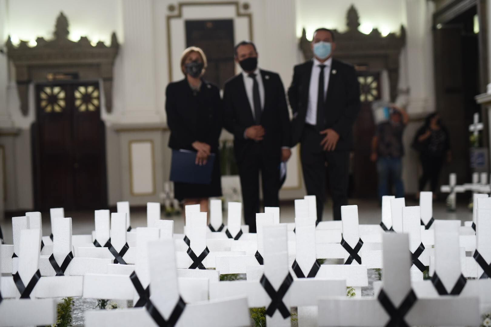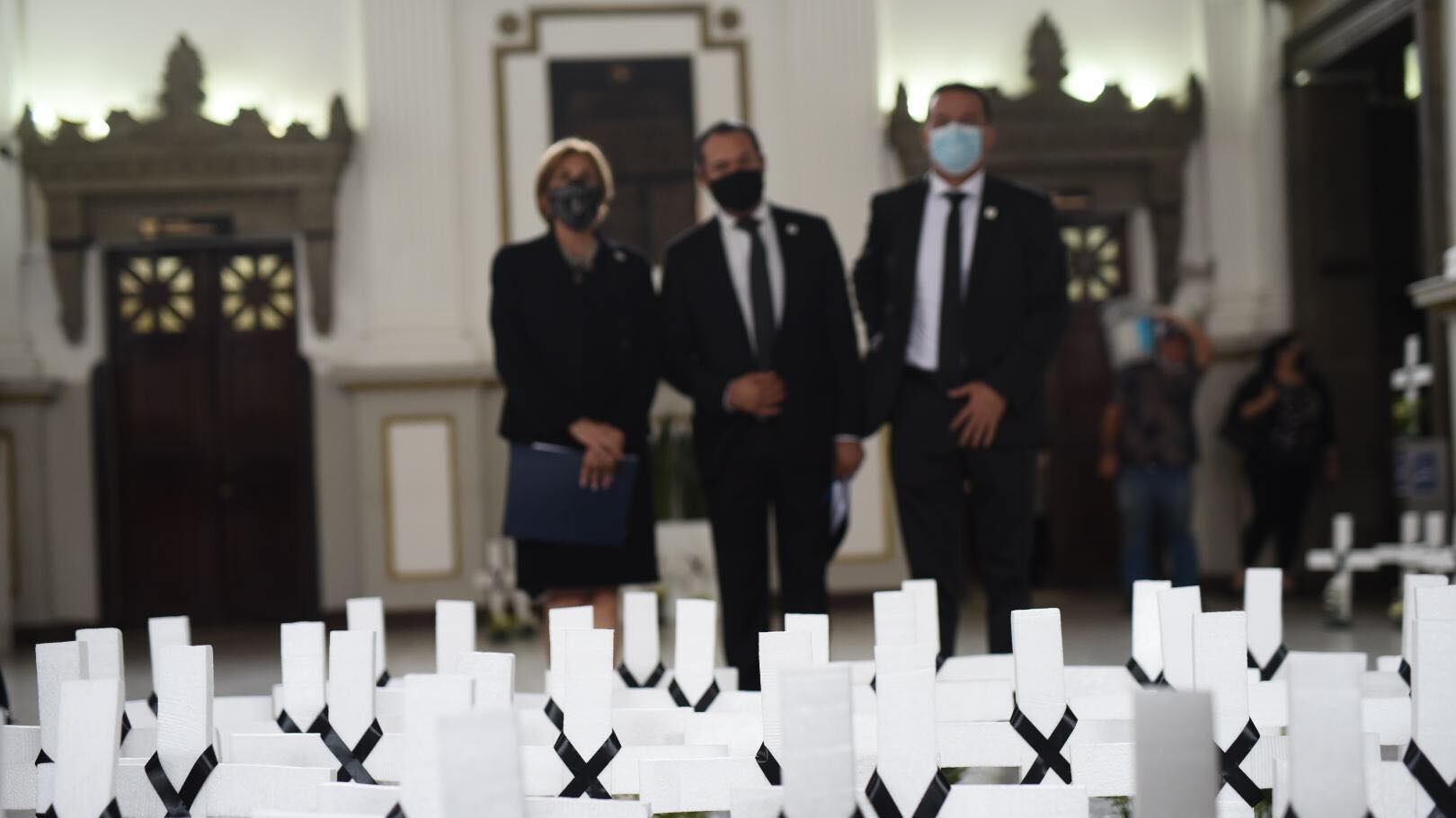 La conferencia de prensa de los diputados de Valor, que se desarrolló dentro de un escenario marcado con cruces y con la proyección de varios casos que impactaron a la población, como el asesinato de la menor Sharon Figueroa, en Melchor de Mencos, Petén.
